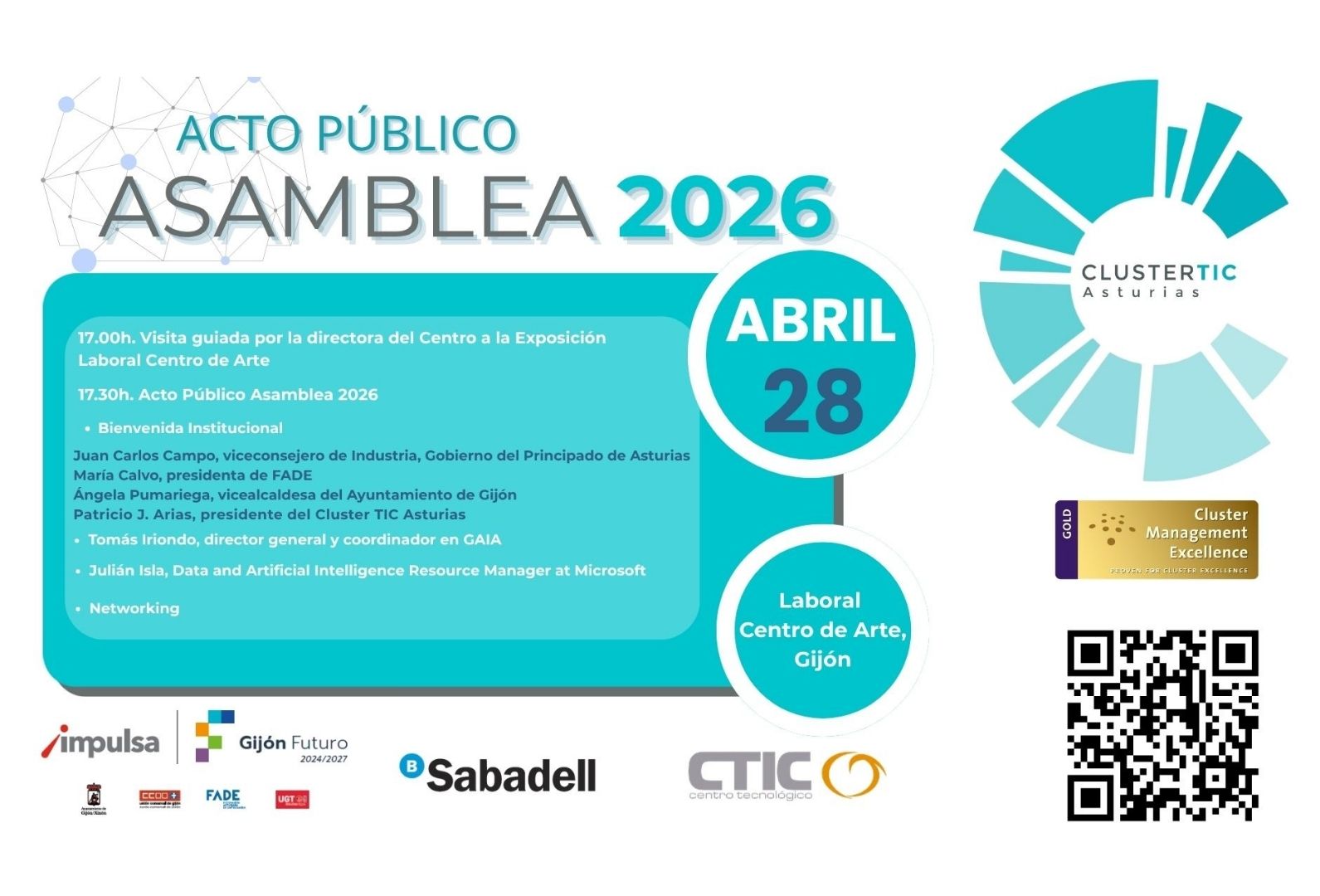 El Cluster TIC Asturias celebramos el próximo 28 de abril su Asamblea General 2026, que incluirá un acto público en el Laboral Centro de Arte de Gijón.