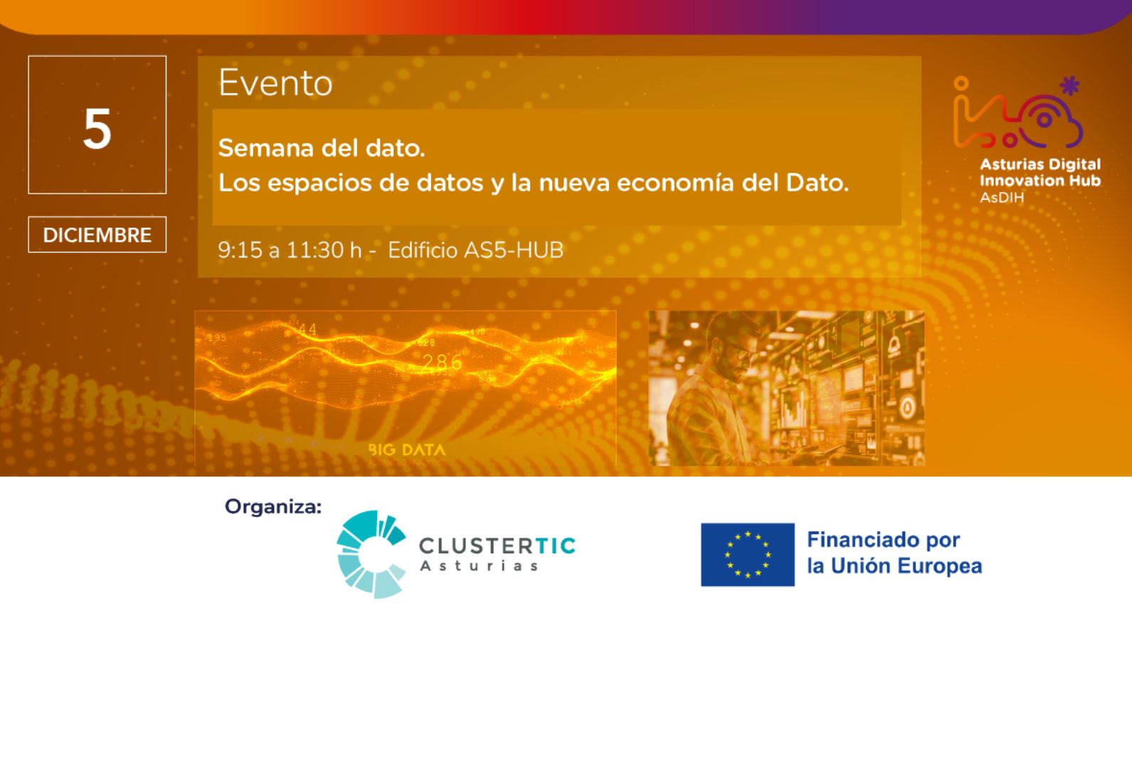 Desde el Cluster TIC Asturias organizamos, dentro del Asturias Digital Innovation Hub (AsDIH), y en el marco de la Semana de Dato, la jornada «Los espacios de datos y la nueva economía del dato», en la que diversos especialistas hablarán sobre asuntos como la convocatoria KED (Kit Espacio de Datos).